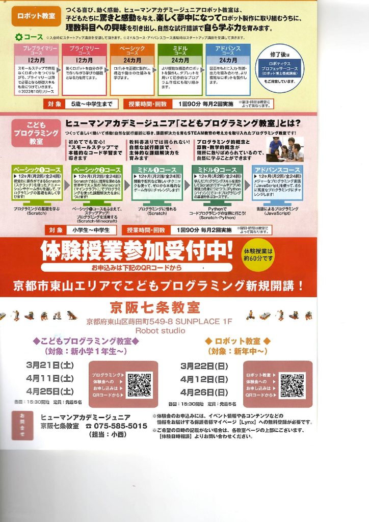5月からヒューマンアカデミープログラミング教室を開講します!